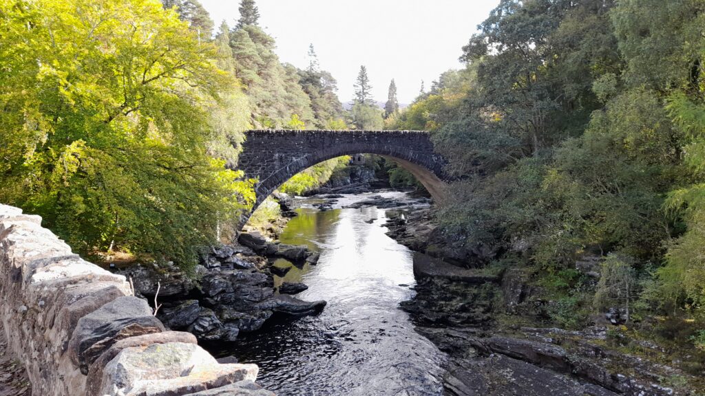 Unterwegs natürlich wieder Wasserfälle. Diesmal direkt an der Straße. Mit zwei alten Bogenbrücken. Invermoristom.