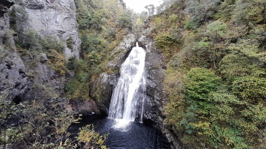 Der zweite, Fall of Foyers, ist wieder mit mehr zu gehen, aber am Ende nur 200 Meter. Es geht den Berg hinunter. Unten kann man auf den tiefen Fall des Wassers sehen.