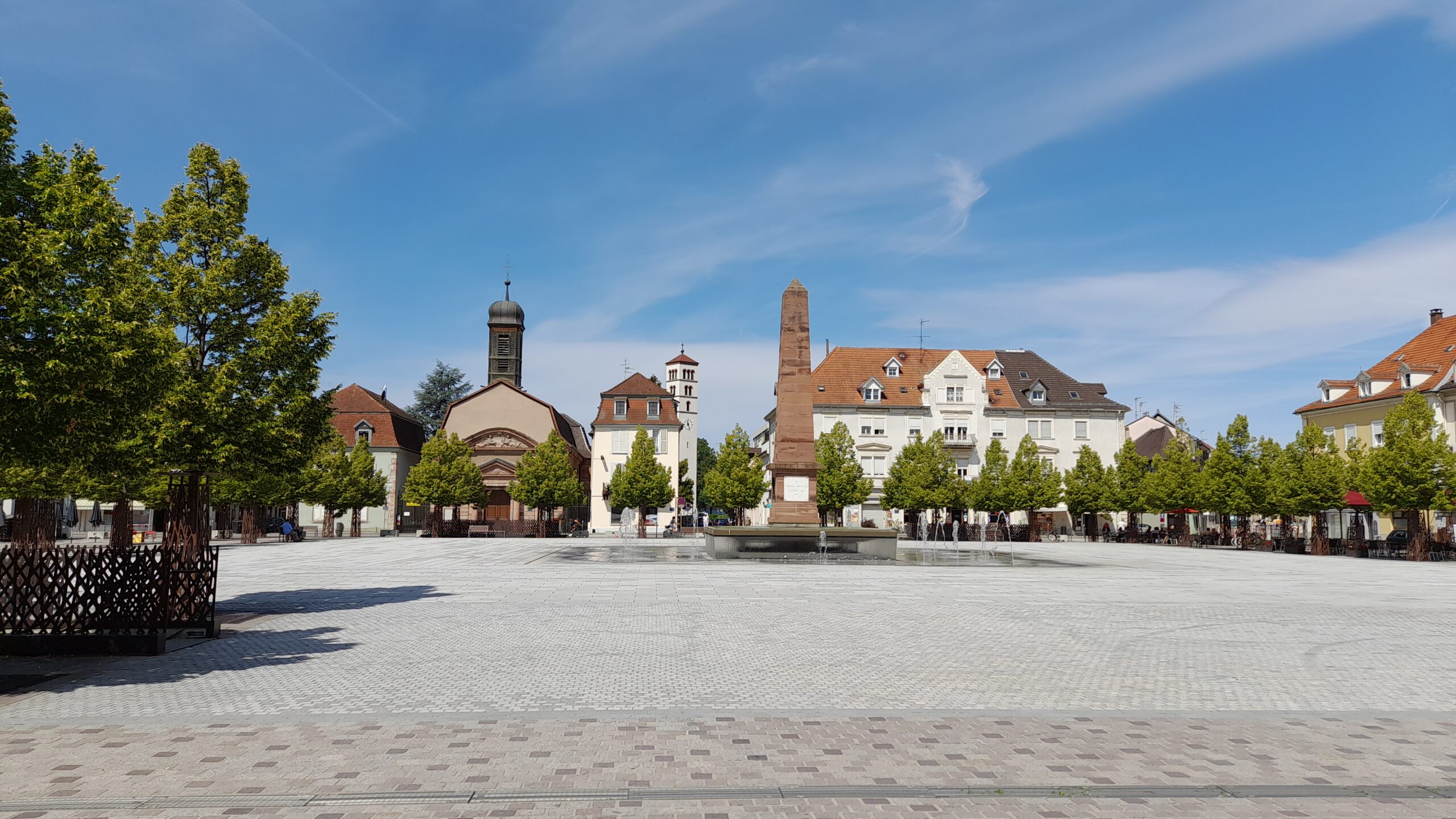 ![]() ![]() | Sonntag, Huningue, Wir informieren uns über den Ort. Hatte verschiedene Herren. Die Festungsanlage die hier mal stand ist bis auf einen unterirdischen Raum verschwunden. Im Zentrum gibt es einen großen Platz mit Springbrunnen um einen Baselisk. Wir machen uns auf den Weg nach Weil am Rhein, was mit Huningue und Basel das Dreiländereck bildet. Mit dem Bus zurück und faulenzen bis zum Abendessen. Es gibt lecker Flammkuchen. |
