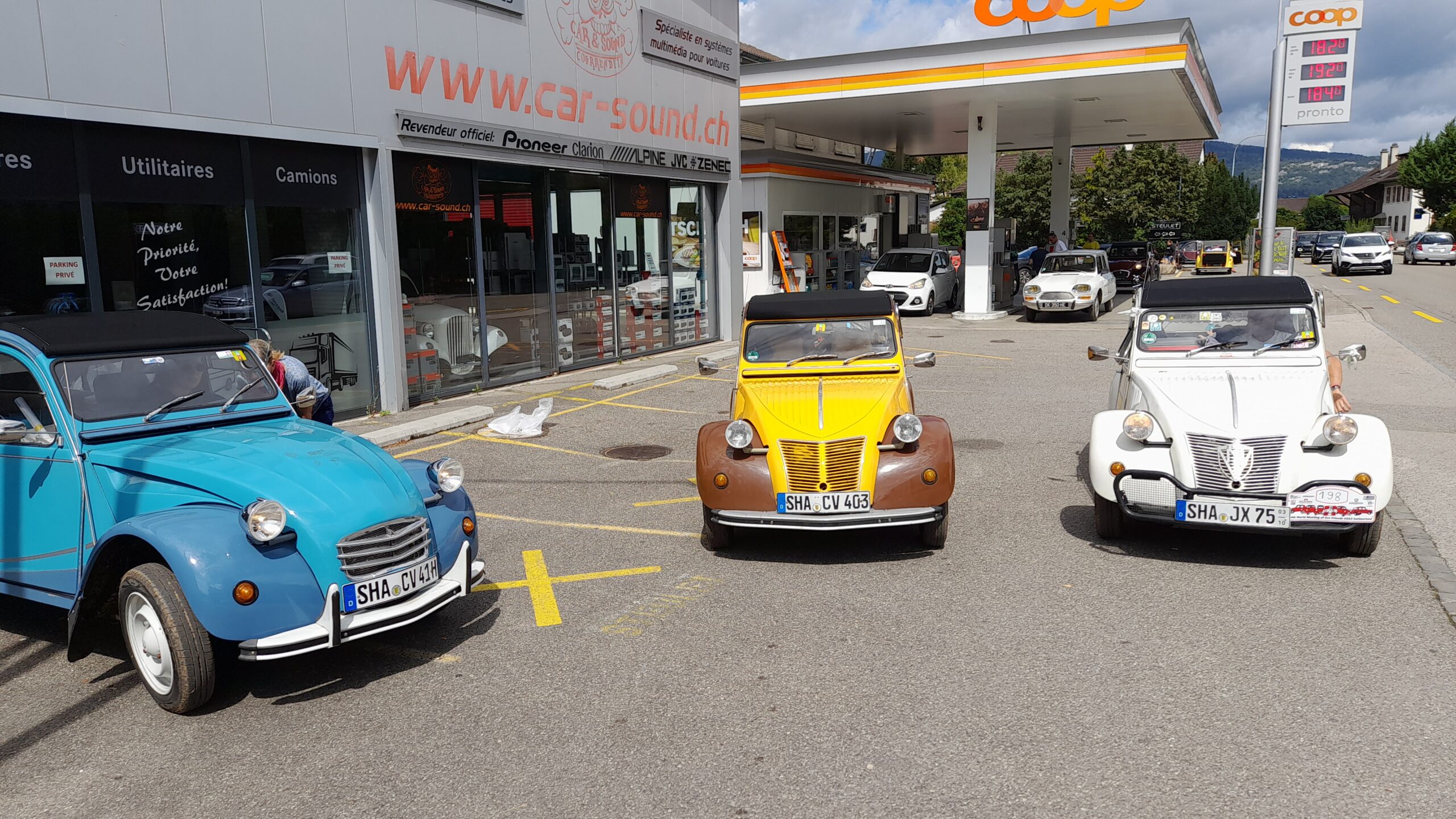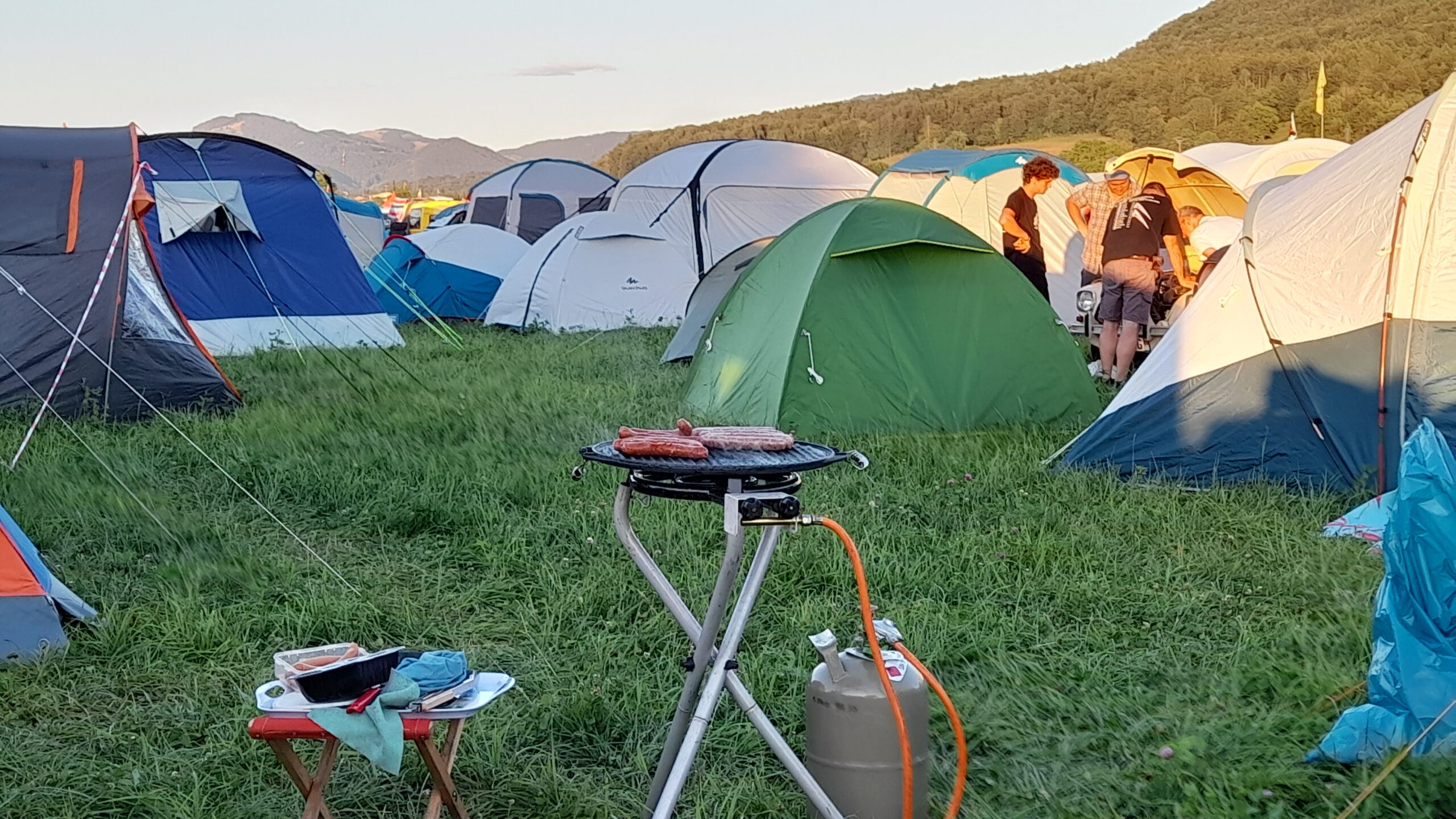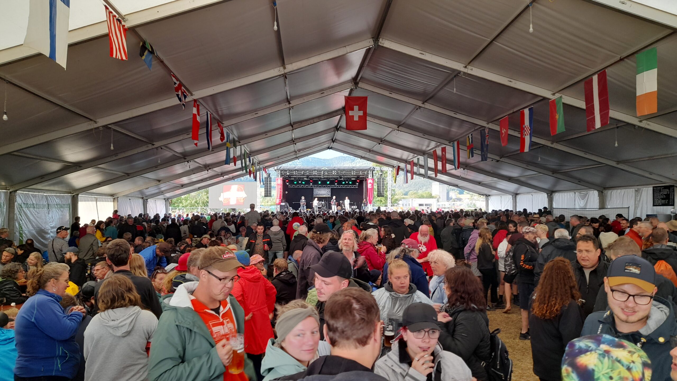 ![]() ![]() | Dienstag Delsberg, Delemont. Alles vorbereitet und gepackt, dass wir gegen 8 Uhr loskommen. Die Stecke geht mit ca. 50 km über kleine Straßen. So gegen 9 30 Uhr reihen wir uns ein in die Schlange zur Anmeldung. Der Platz ist noch relativ leer. Trotzdem werden Bereiche wehement verteidigt. Wir bauen auf und bereiten uns auf das kommende Gewitter vor. Wir schauen uns die Foodtrucks an und suchen uns was zum Essen raus. Dann beginnt auchcschonbdie Begrüßung der Teilnehmer. Alphörner und Bürgermeister und andere wichtige Personen halten reden. Abends spielt die Gruppe BronxX. Zum Abschluß sitzen wir bei Hannes im Zelt. |