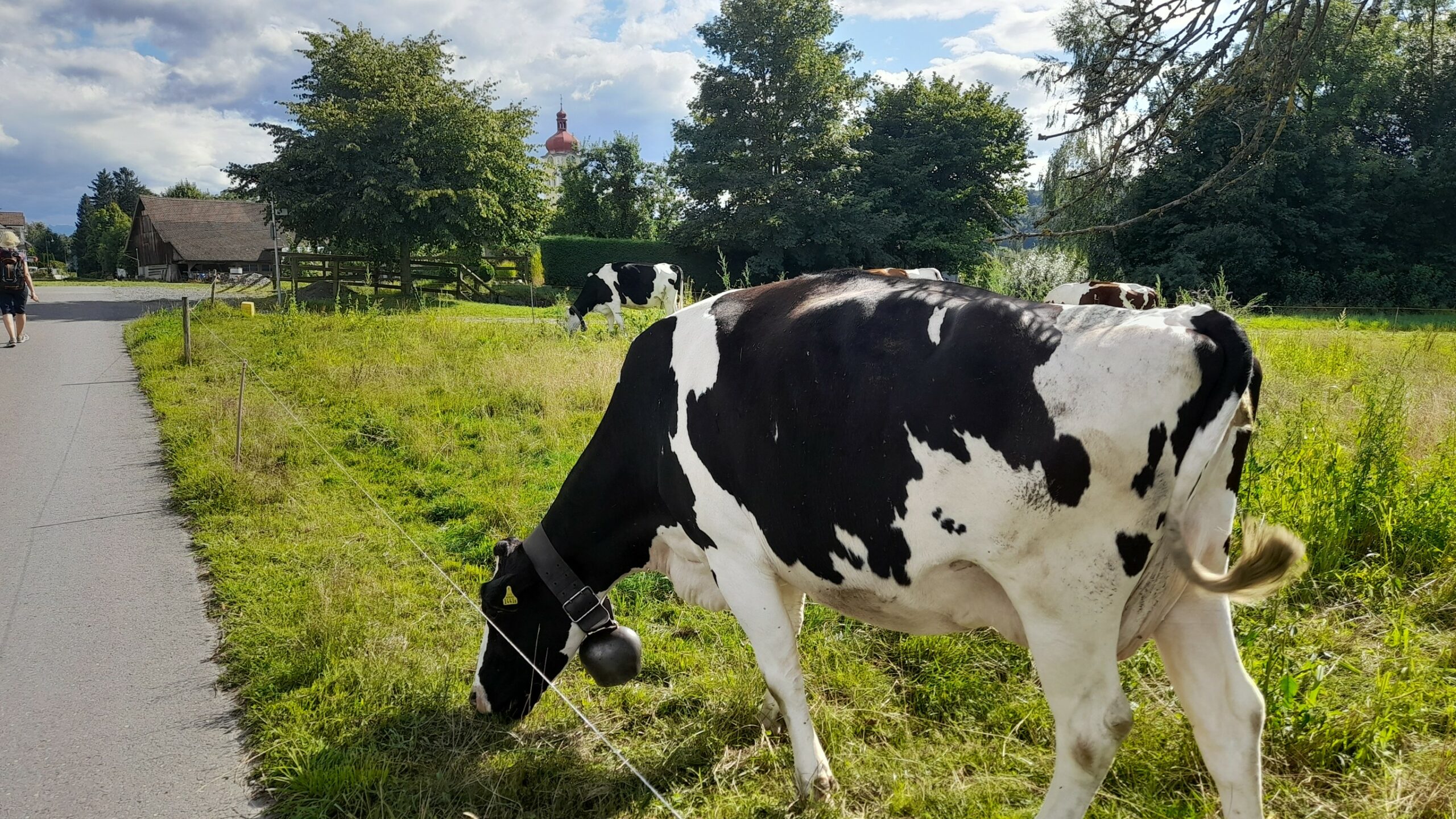 ![]() ![]() ![]() ![]() | Montag 31.07. Mosen. Die Sonne drückt mich aus dem Zelt. Helga war schon Duschen. Wir gehen wandern 14 km 4 Stunde. Zuerst geht es hoch nach Schwarzenberg. Dann oben am Berg entlang und bei Ermensee wieder hinunter. Der Weg führt uns durch kühlen Wald und über Felder in der prallen Sonne. Unterwegs unterhalte ich die Kühe auf der Weide, die mir gespannt zuschauen. Wir sind geschafft, als wir am Campingplatz ankommen und stürzen uns erstmal in die fluten. Anschließend fahren wir noch einkaufen, da morgen Feiertag in der Schweiz ist. Zum Abschluss des Tages sitzen wir vor dem Zelt und spielen Karten. Irgendwo gibtves Feuerwerk. |