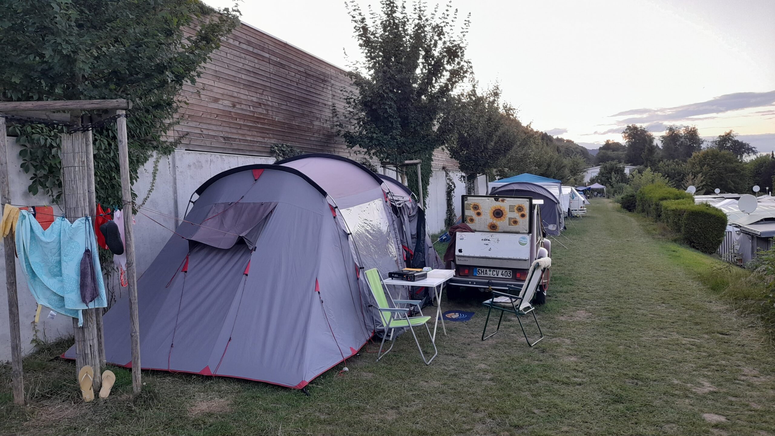 ![]() ![]() ![]() | Sonntag Ententreffen -Mosen. Wir packen zusammen und verabschieden uns vonbden Freunden. Mit Rabea Nadanjo und Cedric fahren wir ein Stück gemeinsam in Richtung Zürich. Dann biegen wir ab. Unser Zeltplatz ist ziemlich schmal und reicht für Zelt und Ente. Ist aber direkt an der Straße. Wir gehen nach Beinwil am See zum Essen und abends noch um die Ecke nach Altmos. |